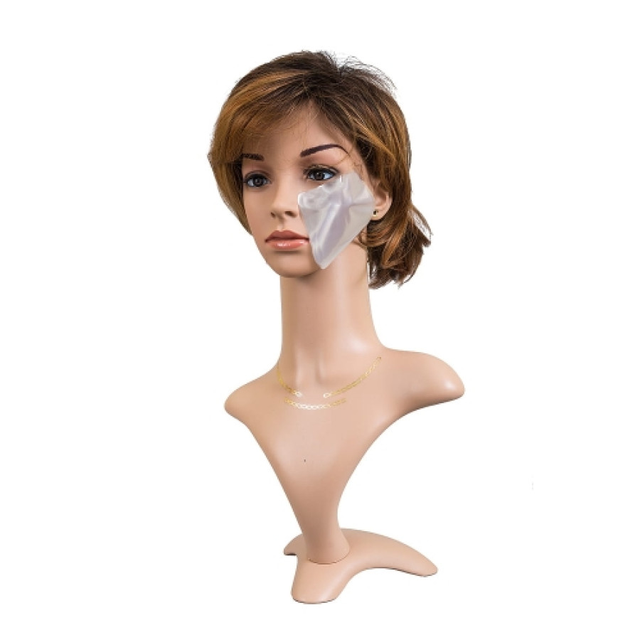 Shapes of foil on the cheeks. Perfect for creating occlusion during anaesthesia.