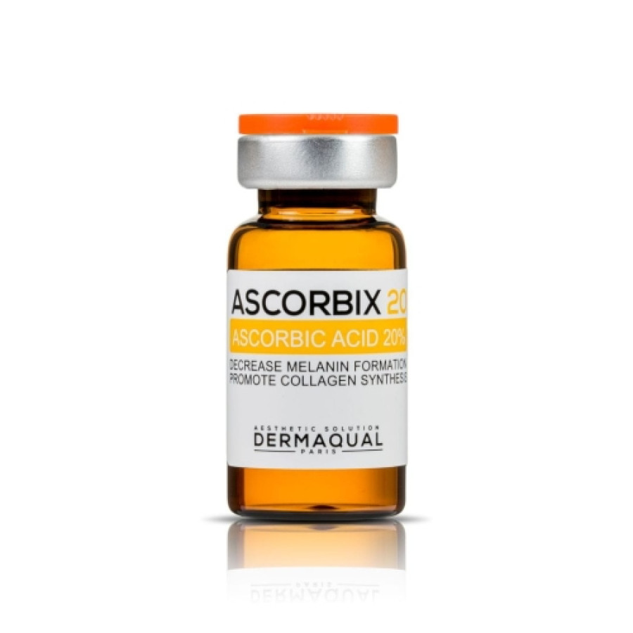 Dermaqual ASCORBIX20 Vitamin C 20%is a product recommended for the skin of each type with a brightening and antioxidant effect. The high content of vitamin C in concentrations as much as 20% perfectly reduces the activity of tyrosinase, preventing the formation of discoloration. The complexion becomes bright and bright. The serum can be introduced using: microhead, needleless, electroporation, ionophoresis mesotherapy. Dermaqual can be combined during treatments: