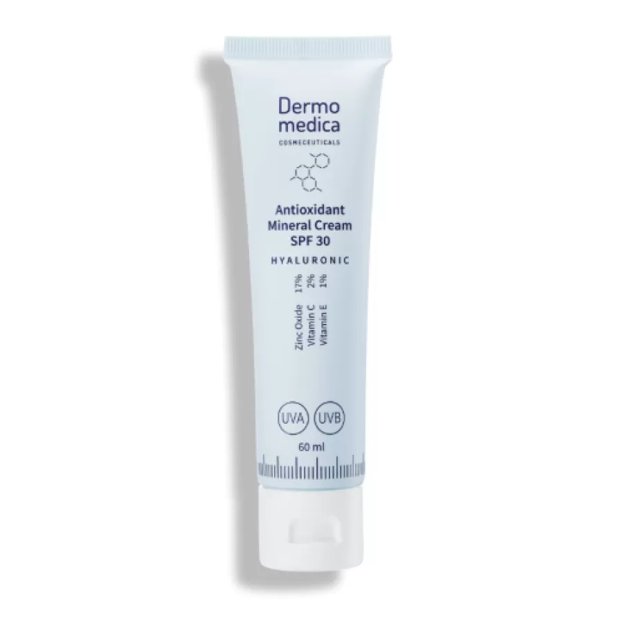 In the innovative composition of Antioxidant Mineral Cream SPF 30 contains strong antioxidants such as vitamin C and E, which are used to neutralise free radicals and delay skin aging processes. High quality filter cream Dermomedica It is recommended to be used after treatments in the field of cosmetology and cosmetic medicine, as well as every day to protect the face from harmful UV radiation. The product is recommended for normal, mixed and greasy, sensitive and irritated skin.