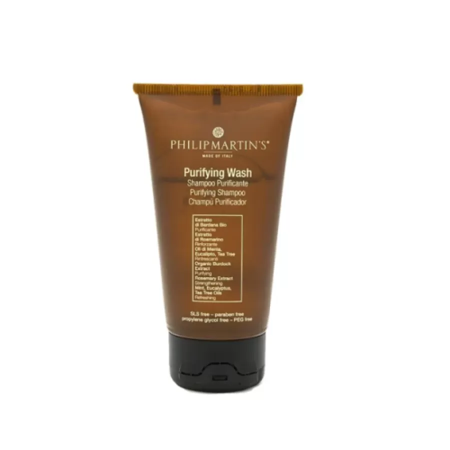 Philip Martin's Purifying Wash is a delicate shampoo for hair and scalp that effectively cleanses the skin and hair, leaving them soft and hydrated. The product is suitable for people with sensitive skin because it does not contain SLS, SLES, parabens or silicones.