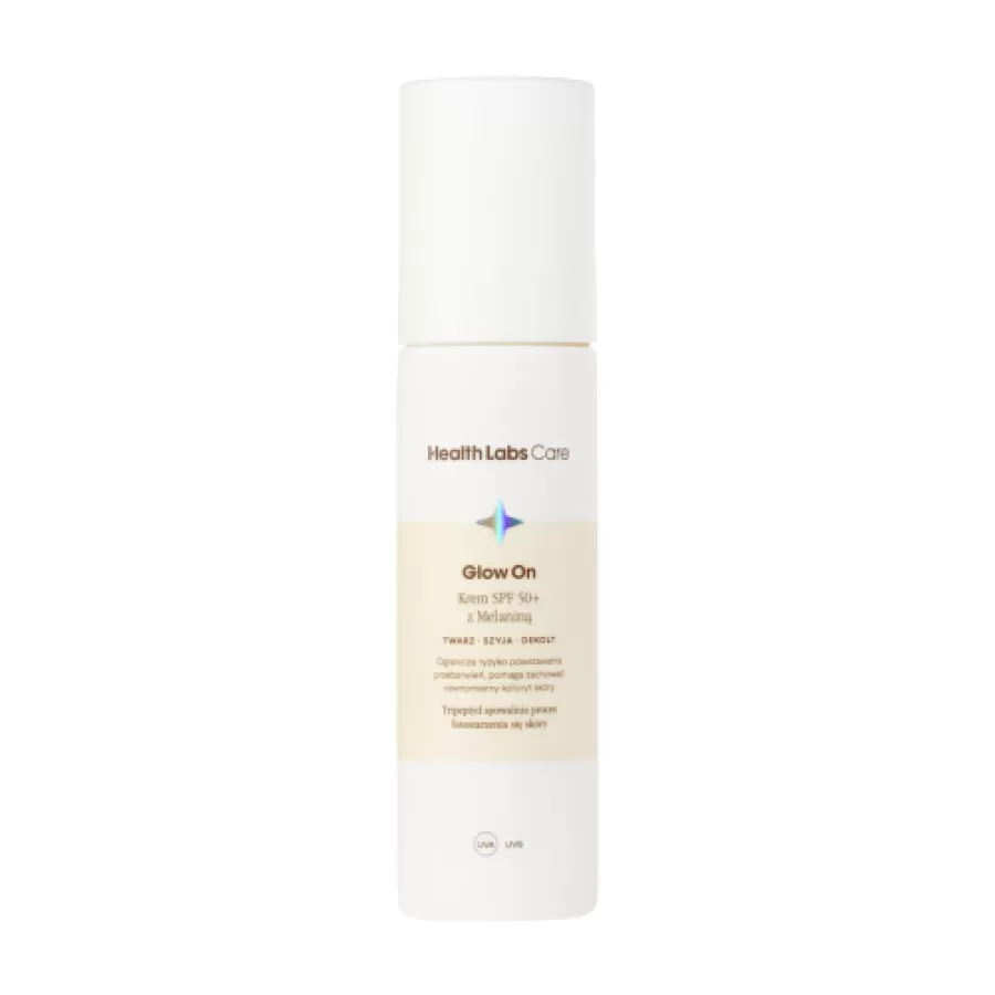 Health Labs Care Glow On KREM SPF 50+ is an advanced sunscreen product that provides maximum protection against harmful UVB and UVA radiation. The cream contains natural melanin, which strengthens the skin's protective barrier, protecting it from damage caused by sunlight. The product is ideal for everyday use, providing skin with a healthy glow and long-lasting protection against photoaging. Thanks to light, unfatty consistency, the cream quickly absorbs without leaving white traces on the skin.