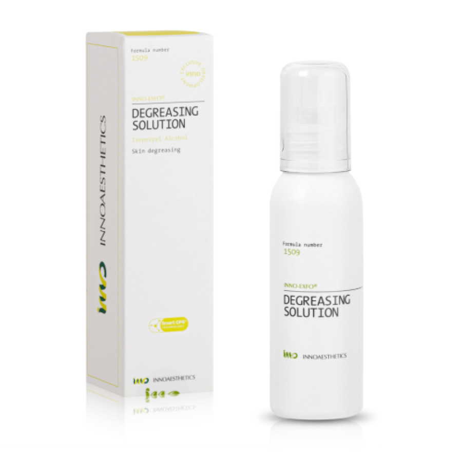 INNO-Exfo Degree Solution is a necessary first step in professional skin care, ensuring its cleanliness, freshness and readiness to accept the wealth of active ingredients contained in subsequent stages of aesthetic treatments.