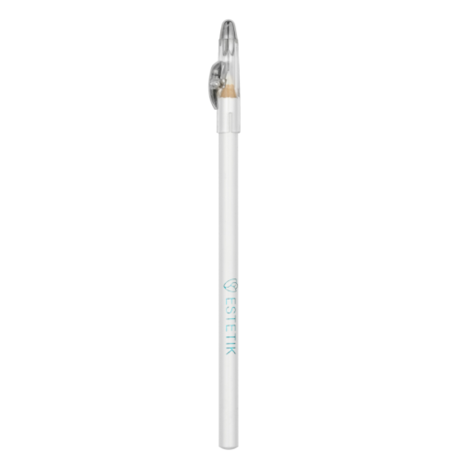 is a product designed to determine the drawing of eyebrows, permanent makeup and marking of injection sites during needle mesotherapy. The edge is made of wood with a plastic cap. An additional advantage of the product is the pencil sharpener placed in the cap.